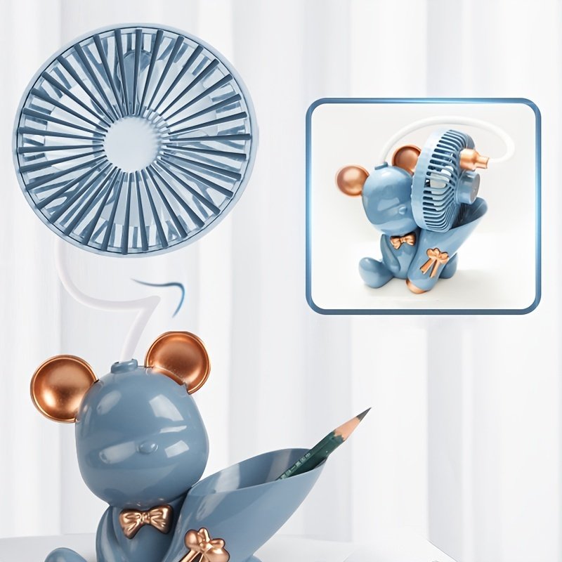 Home > 1pc Mini Bear Portable Handheld Battery Operated Fan Desk Fan; USB Rechargeable Battery Operated Fan; 3 Speeds Silent Desk Fan Mini Small Fan